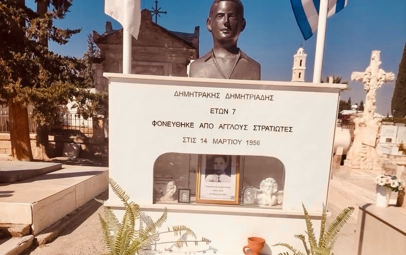 Σαν σήμερα, στις 14 Μαρτίου 1956, δολοφονήθηκε ο Δημητράκης Δημητριάδης, γνωστός ως «ο μικρός ήρωας», όπως τον αποκάλεσε ο Διγενής. Γεννημένος στη Λάρνακα το 1949, ο Δημητράκης ήταν μόλις επτά ετών και φοιτούσε στη Β’ τάξη του δημοτικού όταν πυροβολήθηκε από Άγγλο στρατιώτη κατά τη διάρκεια διαδήλωσης. Στις 12 Μαρτίου 2022 έγινε η ταφή των λειψάνων του νεαρότερου ήρωα της ΕΟΚΑ στο κοιμητήριο Αγίου Γεωργίου (Κοντού) στη Λάρνακα.Τα λείψανα εντοπίστηκαν σε πολλαπλό τάφο στο κοιμητήριο του Αγίου Γεωργίου Κοντού και ταυτοποιήθηκαν με την μέθοδο DNA στο Ινστιτούτο Νευρολογίας και Γενετικής Κύπρου, από την ομάδα γενετιστών του καθηγητή Δρα Μάριου Καριόλου.