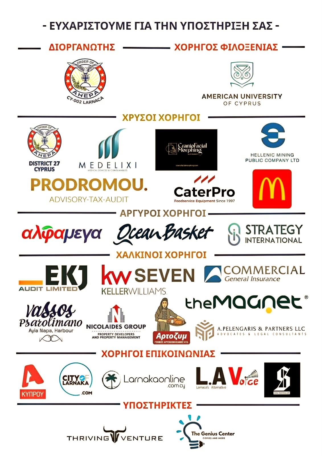Διοργανωτής: ΑΧΕΠΑ Κύπρου – Τμήμα CY002 Λάρνακα Order of AHEPA – District 27 Cyprus