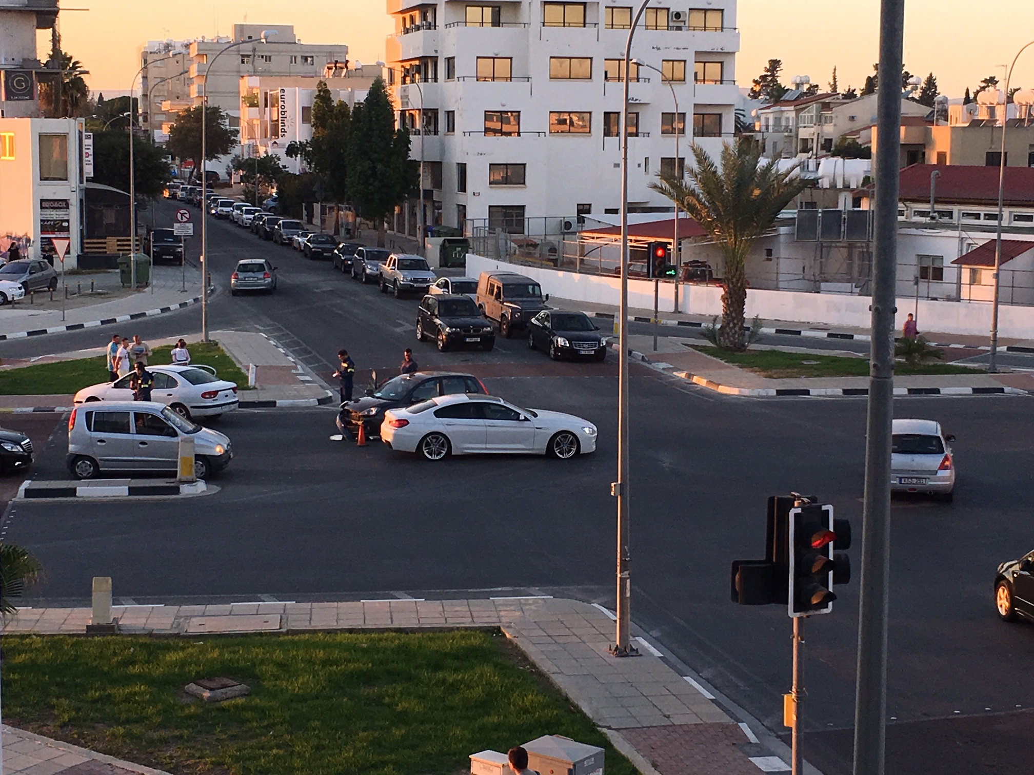 Σύμφωνα με αυτόπτες μάρτυρες, τα 2 αυτοκίνητα συγκρούστηκαν έχοντας κατεύθυνση το ένα προς το Λύκειο Αγίου Γεωργίου και το άλλο επιχειρούσε να στρίψει προς τη λεωφόρο Νίκου Παττίχη.