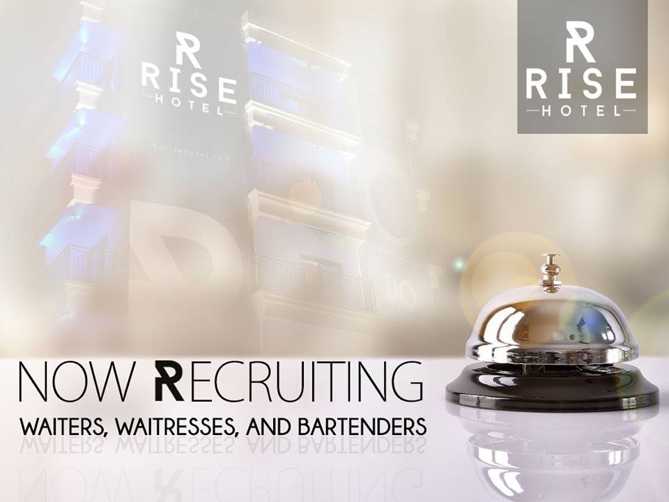 Rise Hotel is now recruiting: Waiters/Waitresses, Bartenders.
