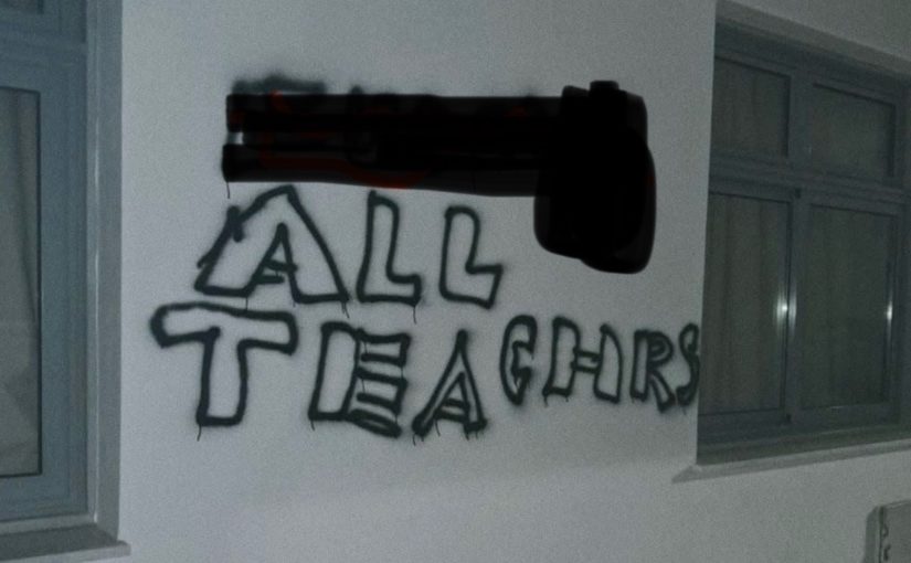 Δε ξέρω για ποια φορά από την αρχή της σχολικής χρονιάς γράφουν στους τοίχους του συγκεκριμένου σχολείου και σπάζουν διάφορα. Και κάθε φορά η Σχολική Εφορεία να τρέχει να τα σβήνει και να διορθώνει τις ζημιές.. Στο φως της μέρας να μπαίνουν στα σχολεία, εννοείται να πηδούν πάνω από τα καγκέλια (πολλές φορές το ύψος μπορεί να φτάνει και τα 3-4 μέτρα) με κίνδυνο της ζωής τους.