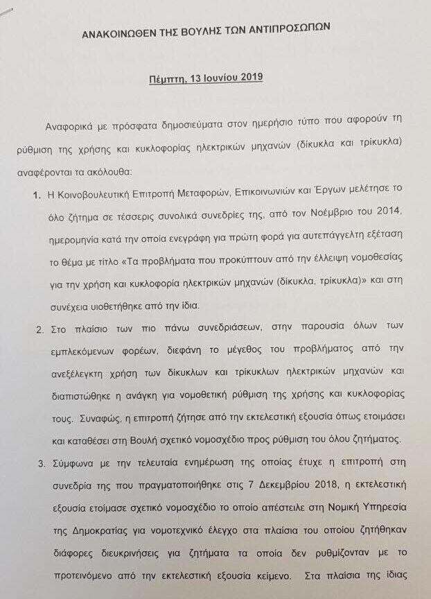 Αυτή είναι η απάντηση της Βουλης και του Υπουργείου στην κριτική μας ως ένωση Δήμων γιατί δεν κάνουν νομοθεσία που να μας επιτρέπει να βάλουμε τάξη με το θέμα για τα σκούτερ αξία: